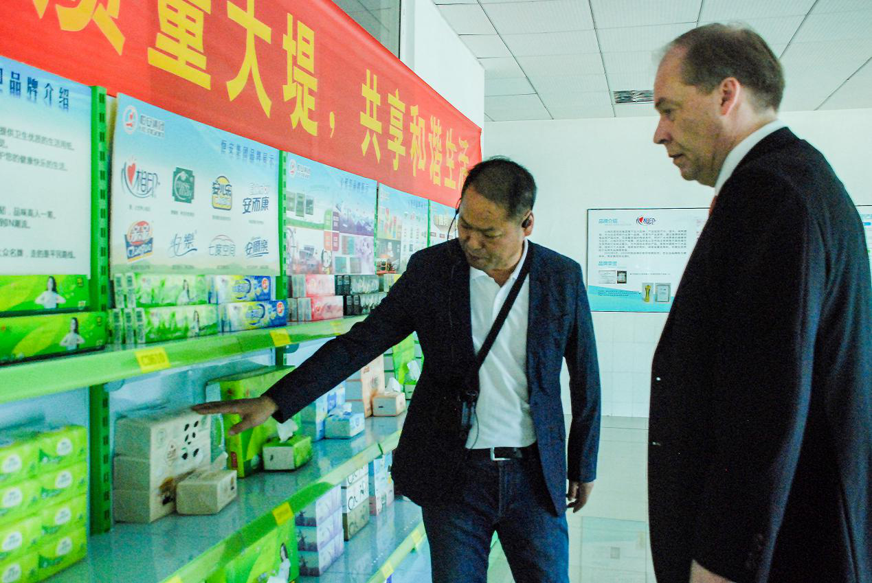 在参观J9九游会(中国)纸业有限公司、福建J9九游会家庭生活用品有限公司两个工厂时,肃海岚深切感受到了J9九游会集团与芬兰的渊源:不远万里进口而来的芬兰木浆,通过芬兰公司提供的生产设备,生产出质量稳定的高档纸巾,走进全球亿万家庭。